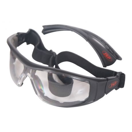 Комбинированные открытые – закрытые очки. Модель с взаимозаменяемыми дужками и головным ремнем. Пенистая окантовка с надрезами по окружности для максимальной защиты от пыли. В комплекте с головным ремнем обеспечивает защиту от среднескоростных летящих частиц (120 м/с), в сочетании с дужками – от низкоскоростных частиц (45 м/с). Возможна поставка сменных линз: прозрачная (131-0427-02), серая (131-0427-01).