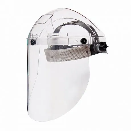 Термостойкий лицевой щиток РОСОМЗ НБТ1 ВИЗИОН КЛАССИК ТИТАН с прозрачным козырьком для увеличения поля зрения и наголовным креплением. Размерный ряд от 53 до 65 см.