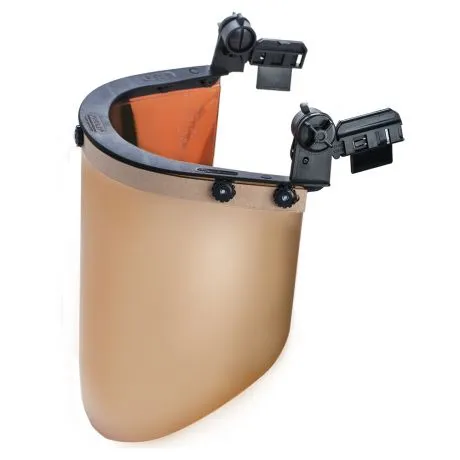 Защитный щиток с термостойким универсальным креплением на каску КБТМ ВИЗИОН ТЕРМО. Фиксируется в двух положениях. Используется для работ у доменных, сталеплавильных и других промышленых печей, для защиты от слепящей яркости видимого света, ИК-излучения ивысокой температуры.