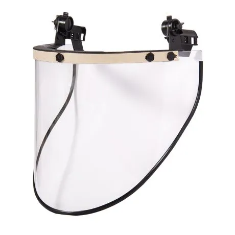 Термостойкий лицевой щиток РОСОМЗ КБТ ВИЗИОН ЭНЕРГО для защиты от воздействия электродуги с креплением на каску и огнестойкой окантовкой.