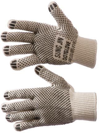 изготовлены из натурального хлопка, а точечки на контактной поверхности из специального полимерного материала. Покрытие из ПВХ позволяет крепко удерживать в руках скользящие материалы, структура покрытия не позволяет предмету вылететь или выскользнуть из руки. . Эти перчатки изготавливаются из 100% натуральной хлопковой нити, что позволяет полностью исключить аллергические реакции на искусственные материалы у рабочих, страдающих аллергией.