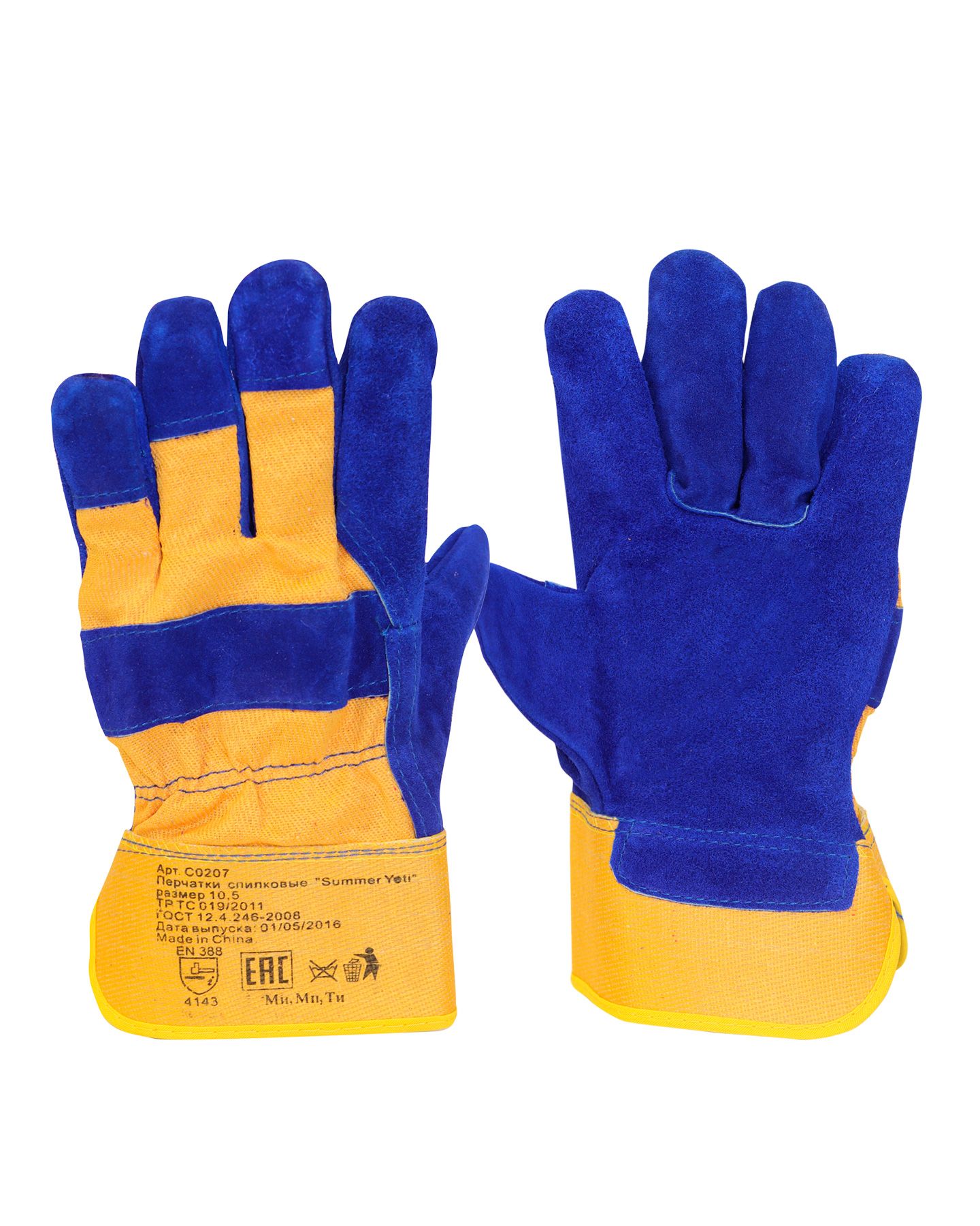 Перчатки комбинированные из качественного спилка КРС, толщина 1,2 мм, и плотной х/б ткани. Цельнокроеная ладонь из спилка. Флисовая подкладка на ладонной части, манжет - жесткая крага.